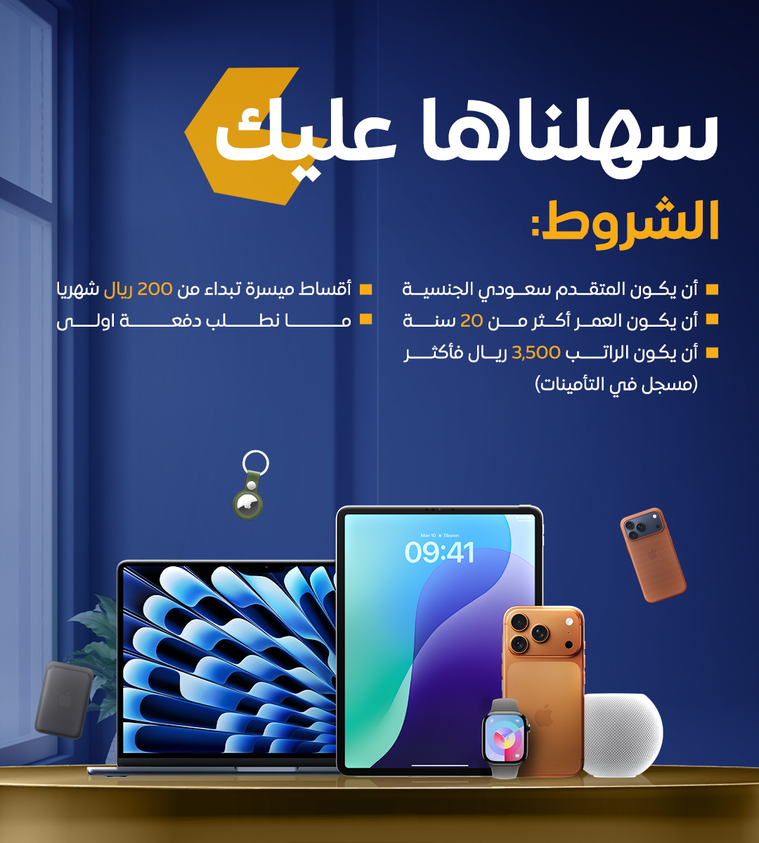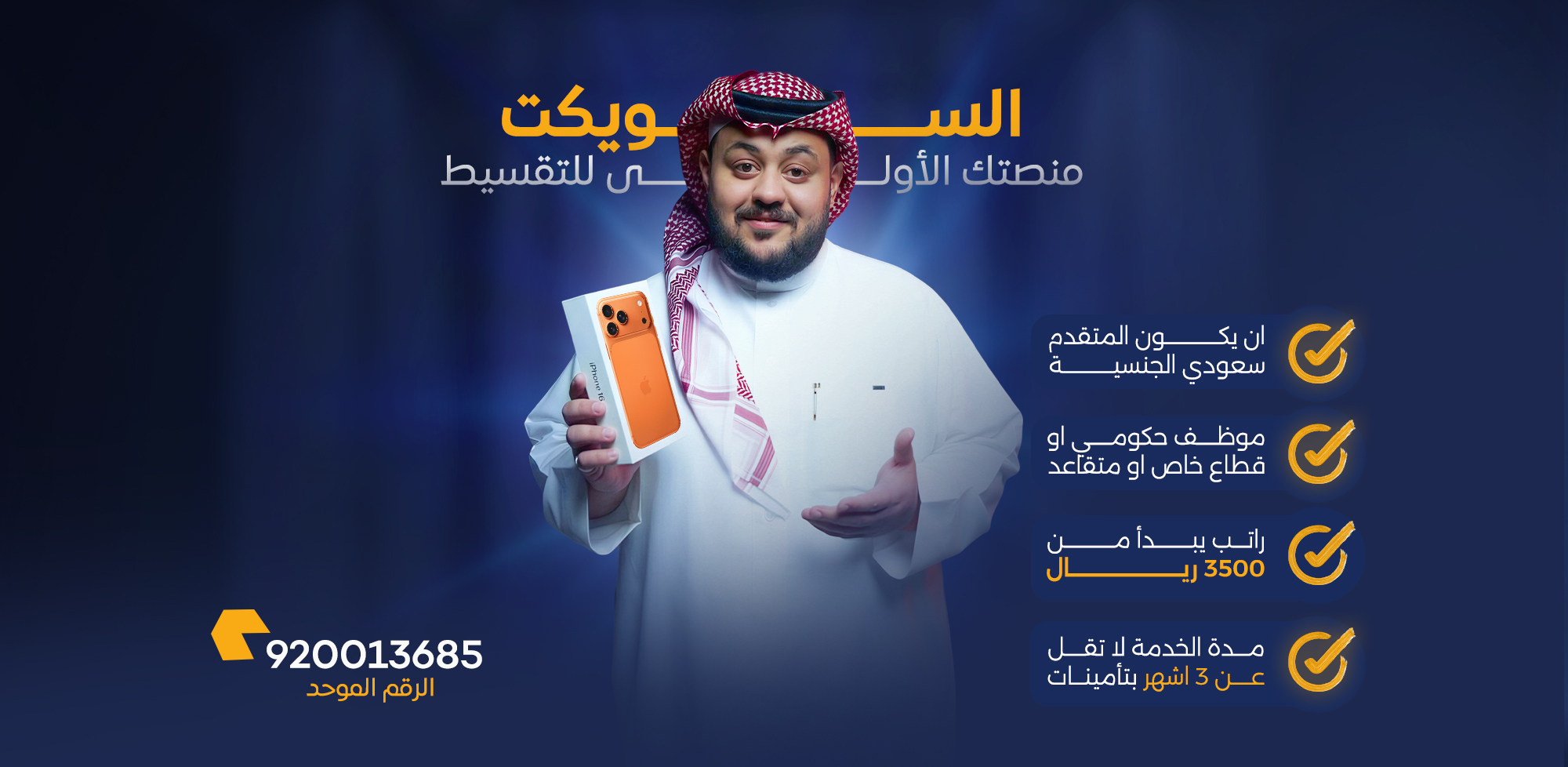 لا، ما تحتاج كفيل. نعتمد على معايير تقييم بسيطة وواضحة عشان نسهل عليك عملية التقسيط.