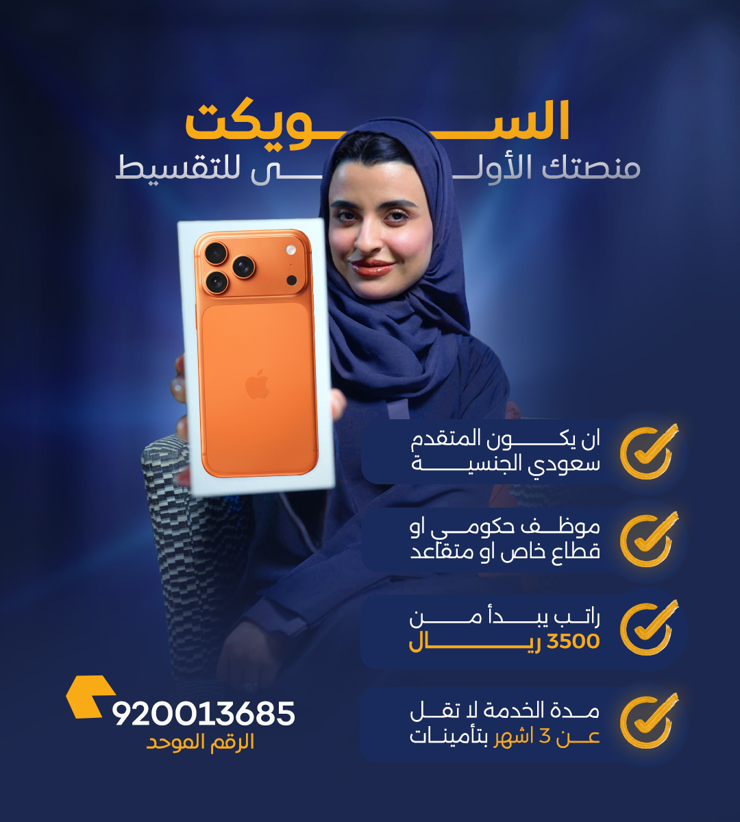 لا، ما تحتاج كفيل. نعتمد على معايير تقييم بسيطة وواضحة عشان نسهل عليك عملية التقسيط.